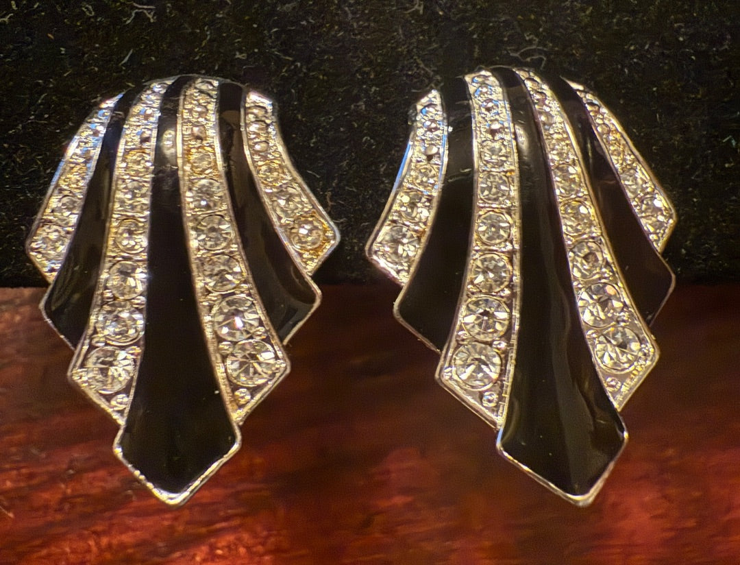 Black CZ Enamel Christmas Clip Earrings