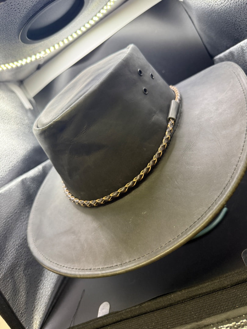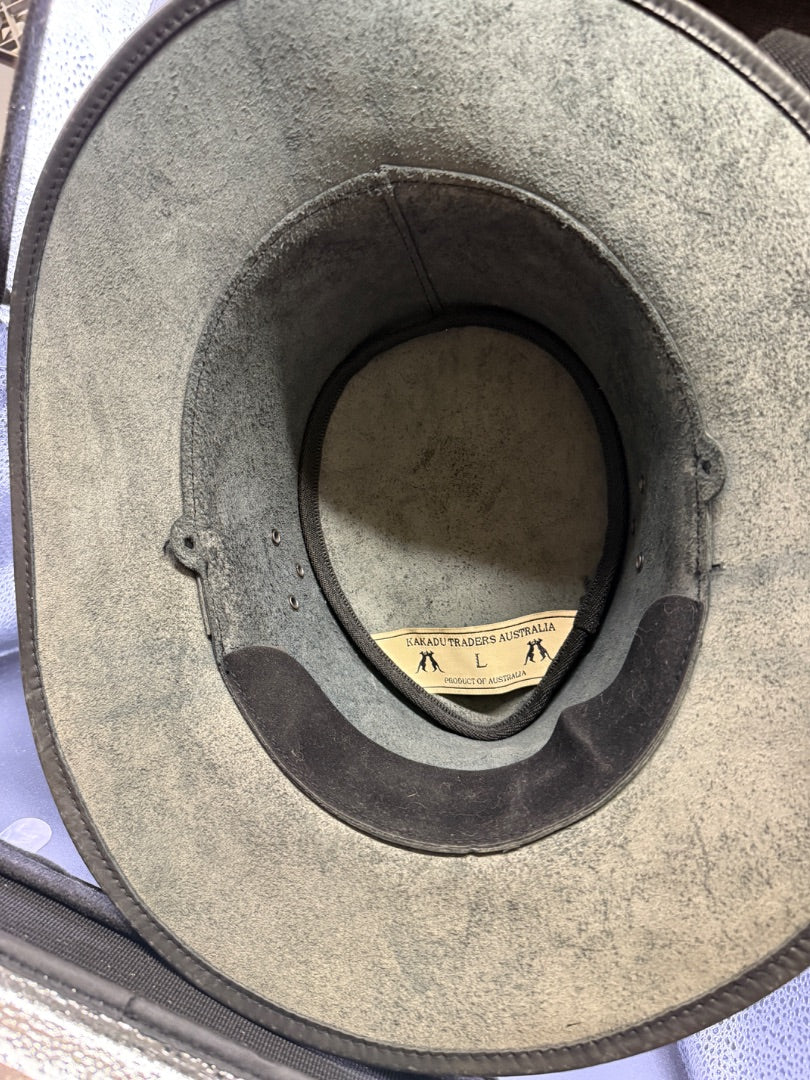 Dark Brown Kakadu Traders Australia Leather Cowboy Hat, Large