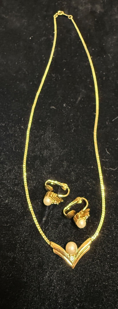 Petite Pearl Gold tone set