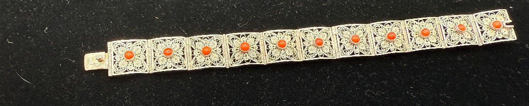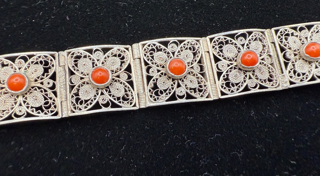Sterling Filagree Coral Bracelet